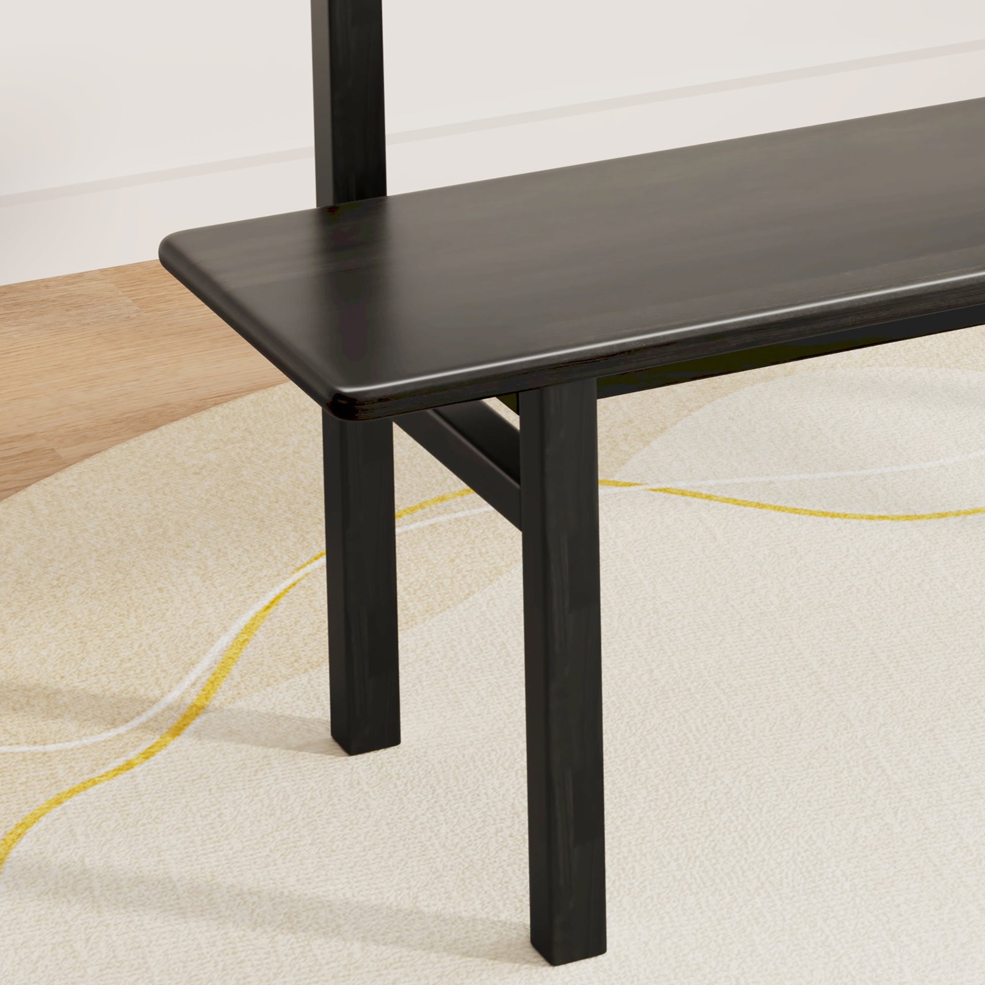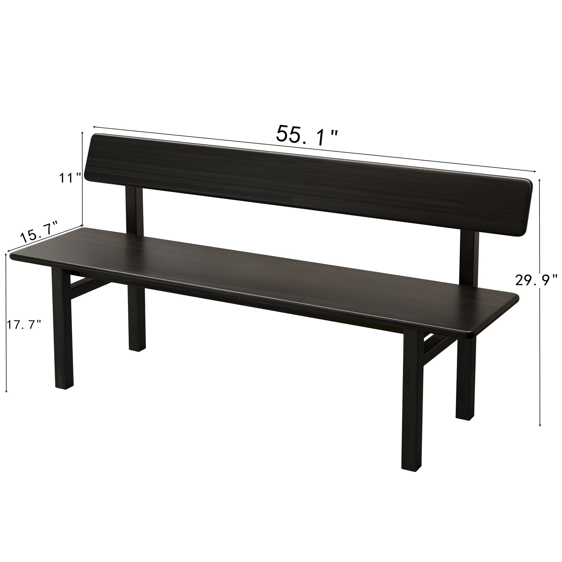 3 Person Farmhouse Dining Bench, Solid Wood Entryway Bench, Wooden Outdoor Bench, Kitchen Dining Seat and Backrest, Black