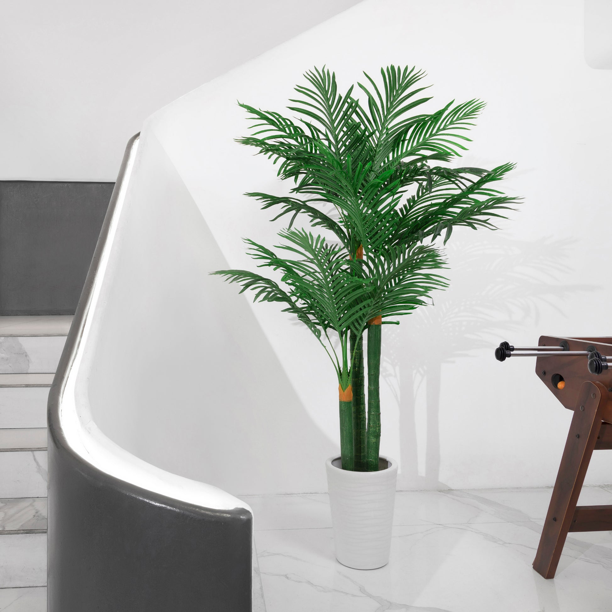 BALANBO Golden Cane Palm Artificial Tree with Four Realistic Trunks for Indoor Outdoor Décor with Black Nursery Planter