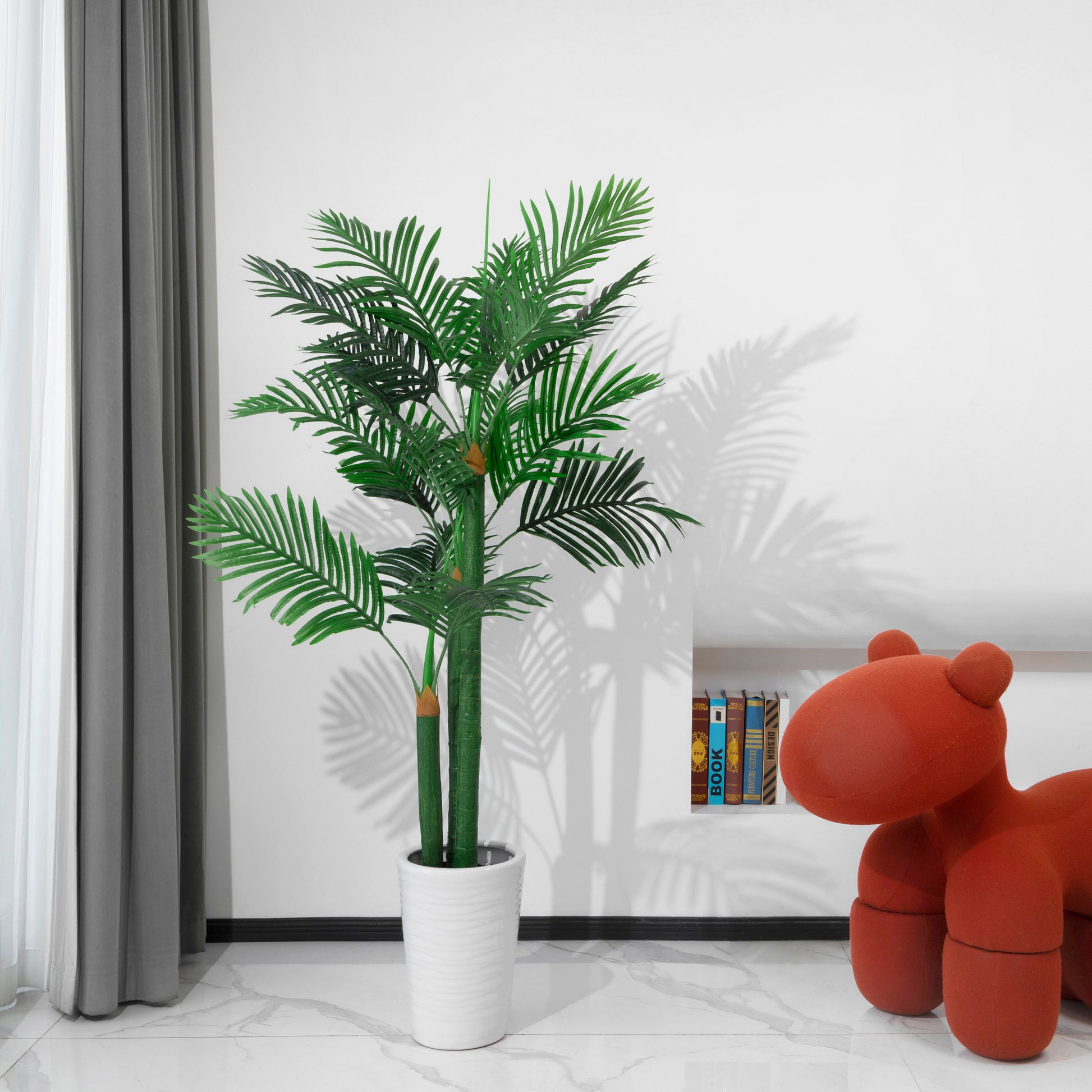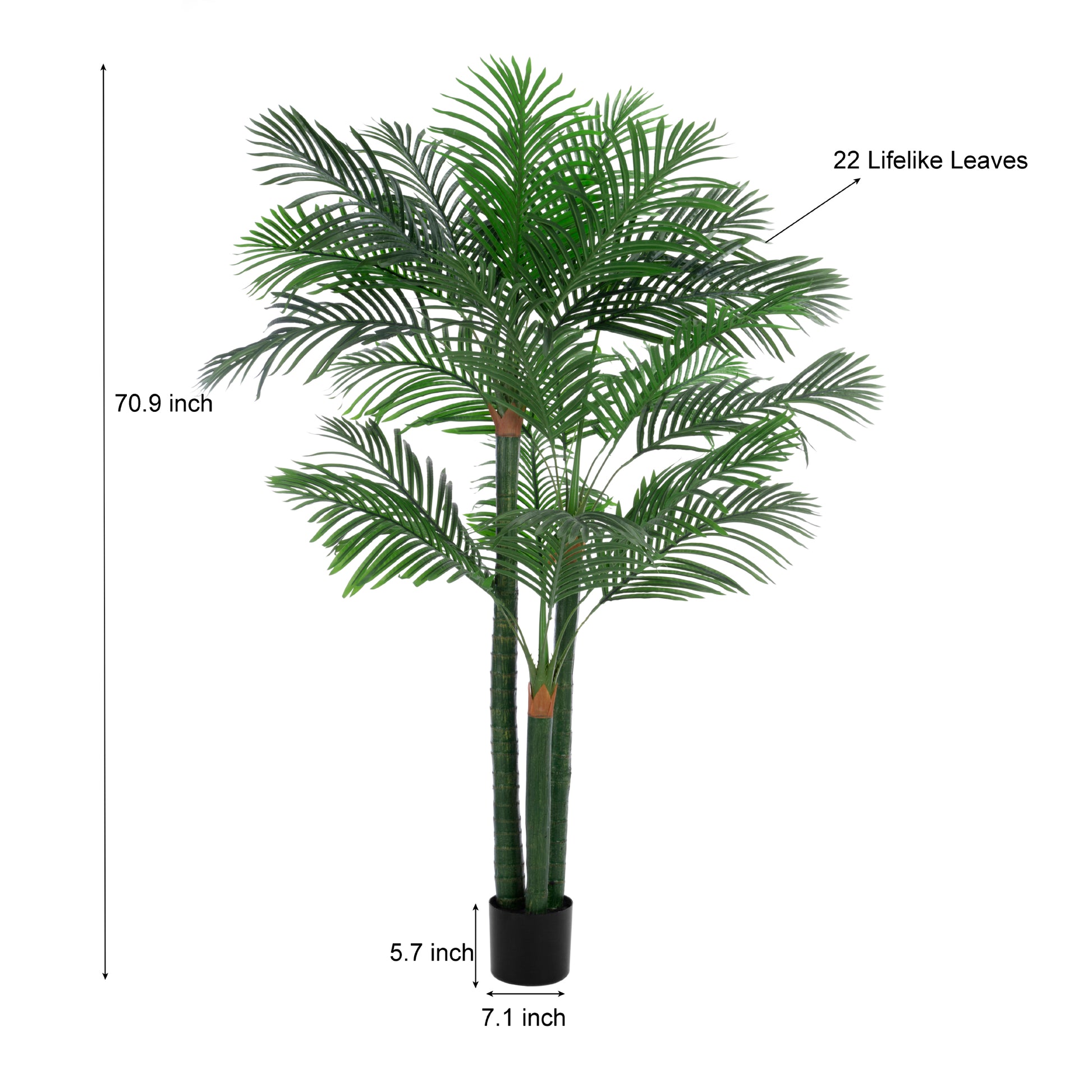 Lifelike Artificial Plant:This 8 feet majestic triple tropical golden cane palm artificial tree has 35 large vivid fronds filled with countless arching feather-like leaves with realistic palm texture, three lifelike bamboo trunks are very strong, it looks so lush and great, it will create a tropical paradise atmosphere for you and those around you, now this extra tall triple cane palm tree is waiting to dance in the warm tropical breezes